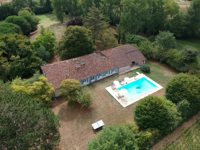 Situated half way between BORDEAUX and TOULOUSE, just 25 kms from AGEN and motorway and TGV rail access within 2 kms of a medieval hilltop village with moulin and spectacular views down over LOT valley..