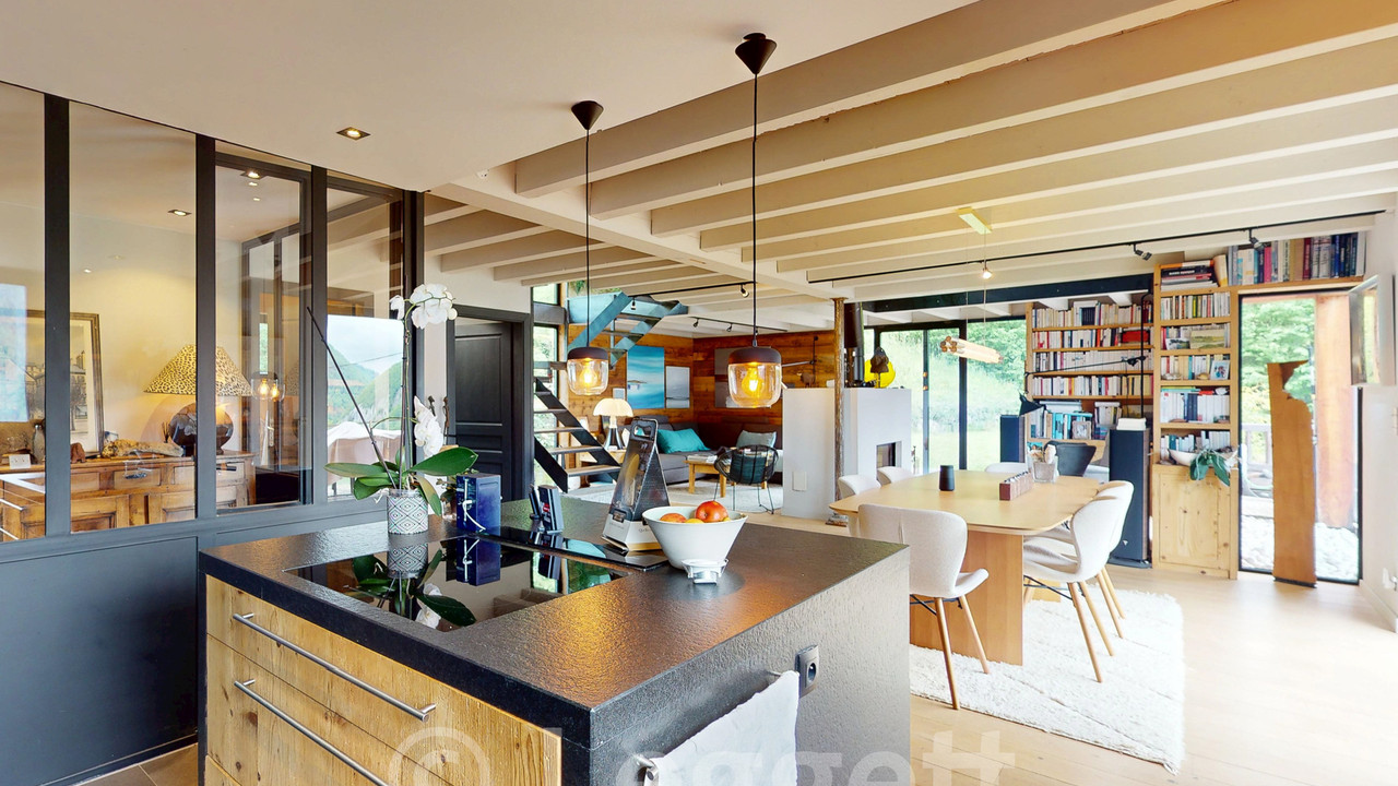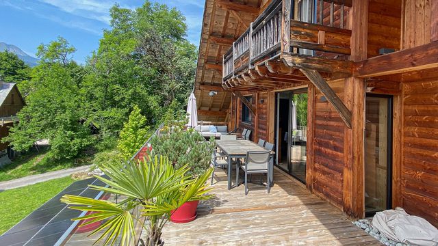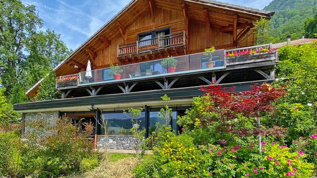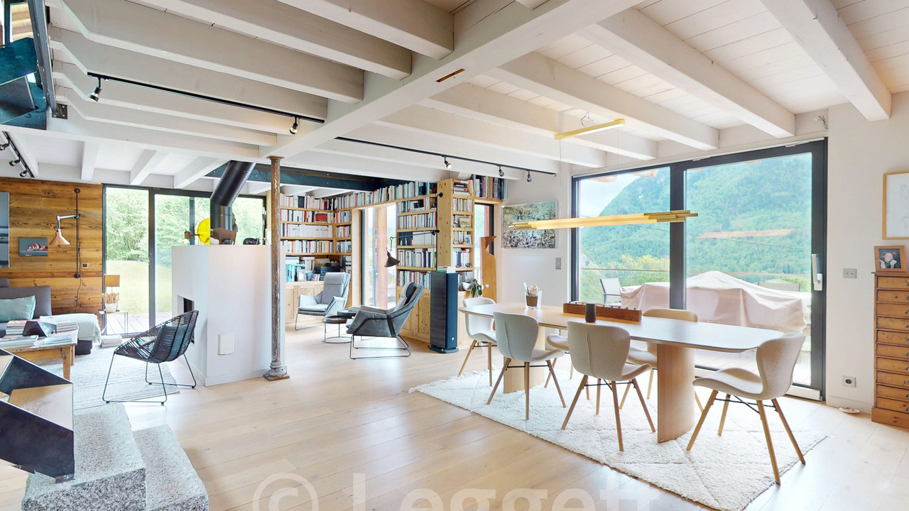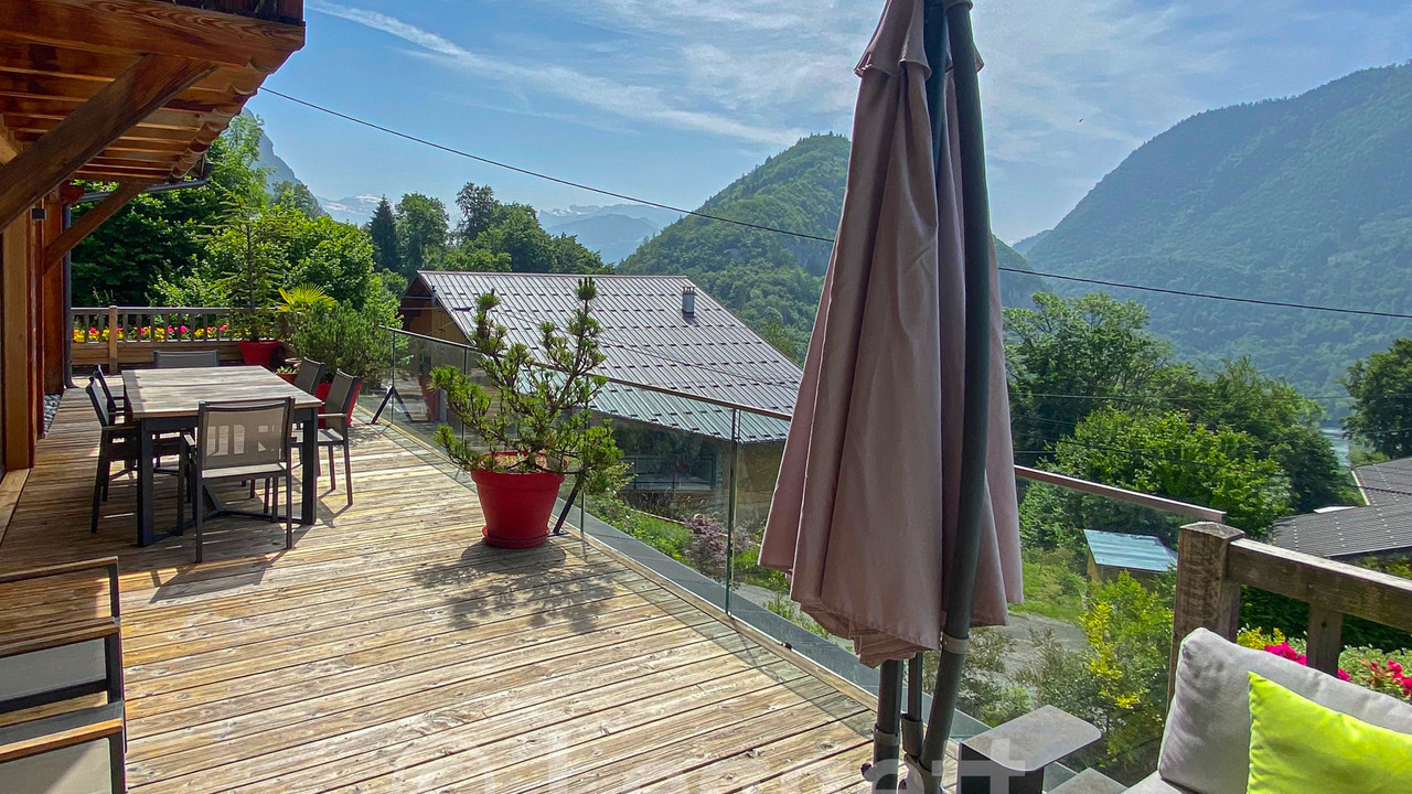 A39437JST74 - In a sunny hamlet above Mieussy, this chalet, built in 2007 and fully renovated in 2015 by an architect, offers 2,030 m² of land, south-facing views, and a mix of Alpine charm and modern design.