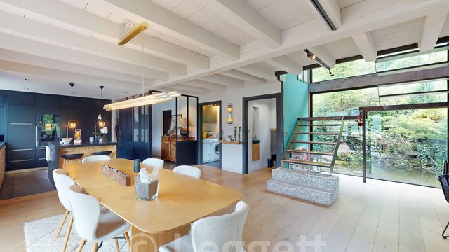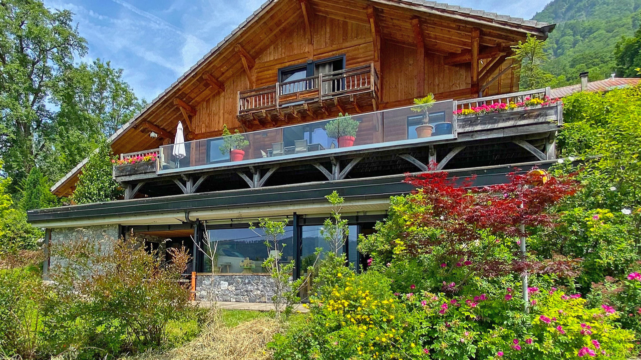 Set in extensive grounds, modern south-facing chalet with independent apartment. Easy access to Gene