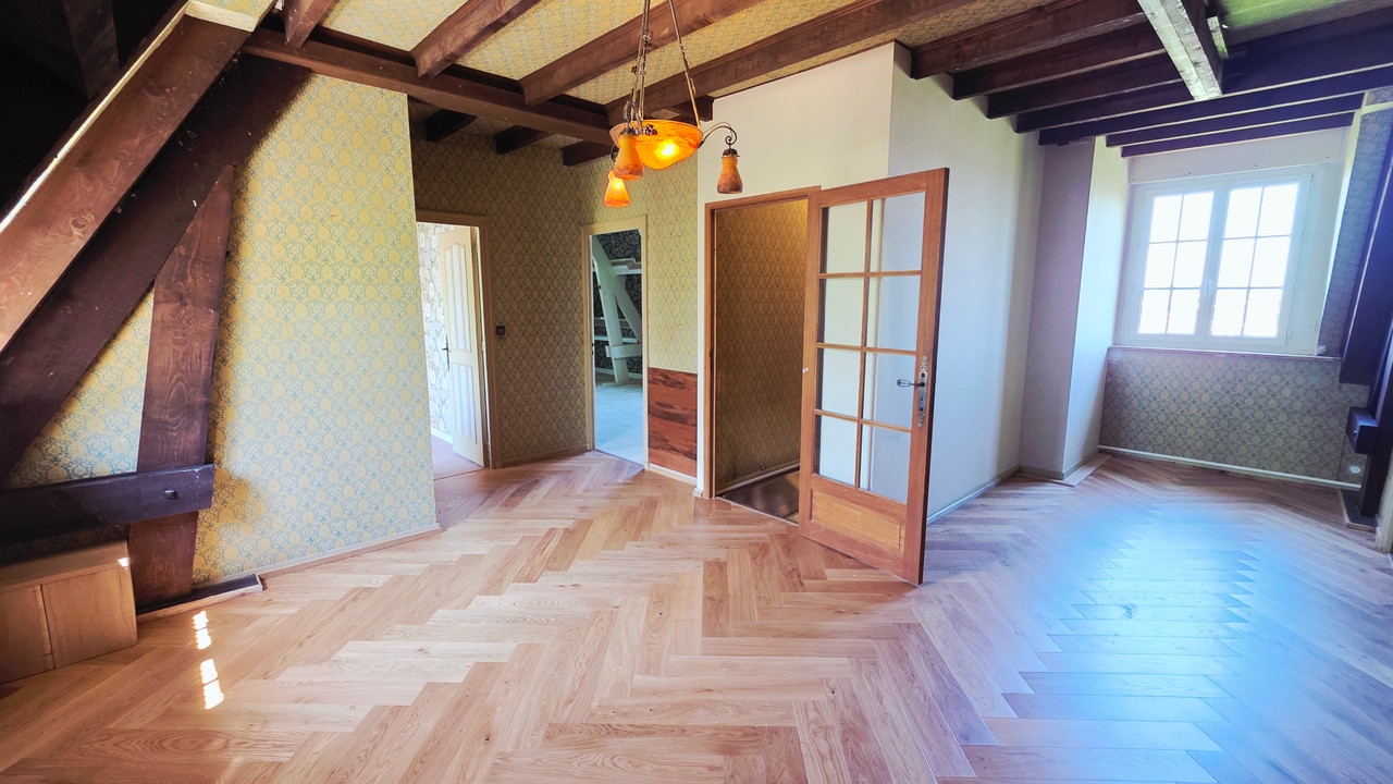 Perched on 35,000 m² of wooded land, this spacious 261 m² house offers exceptional views. It comprises 12 rooms including 4 or 5 bedrooms. Two bathrooms, 2 toilets, a mezzanine, and a large living room opening onto a 43 m² northwest-facing terrace. Heating by heat pump and open fireplace. Two large garages, cellar, electric gate. Insulated attic and cellar. Outbuildings of over 40 m². Well-maintained and ready to move into. A quiet and green setting, ideal for a family or a gîte project. Visit our website for more details.