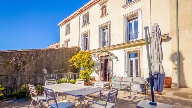 A41540DAL34 - Located in the heart of this charming village, this exceptional winegrower's house is full of character and charm. Arranged over three floors, it offers several reception rooms, a dining room, kitchen, and utility room. There are seven bedrooms, with the possibility of adding more, along with two bathrooms and separate WCs. Outside, a large terrace and stairs lead you to a secret garden with a stable, additional courtyard with well and a garage. Close to all amenities, with Béziers just 20 minutes away and the beaches 35 minutes
