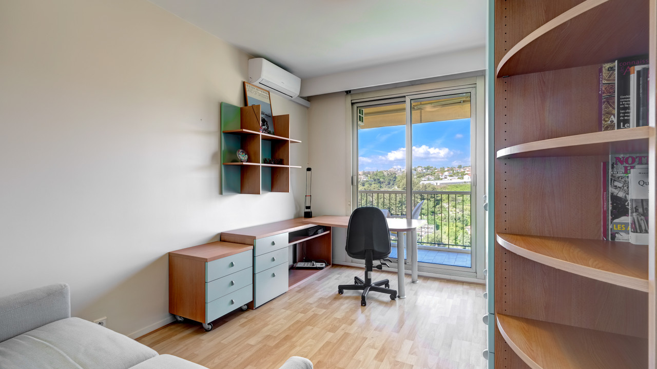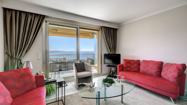 A37442VAP06 - Located in the prestigious Abbaye de Roseland gated domain in Nice Fabron, this 97 m² apartment offers breathtaking panoramic views of the sea, the city of Nice, and the mountains.