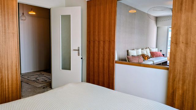 The living room opens onto a south-facing terrace of 6m², perfect for enjoying the Mediterranean sunshine. The fully equipped kitchen is ready for immediate use, while both bedrooms feature built-in wardrobes providing ample storage. The bathroom includes both a bath and shower, complemented by a separate WC. Double-glazed windows with security shutters ensure a quiet and secure environment. Located in a well-maintained condominium on a quiet cul-de-sac, residents also benefit from an on-site concierge, a private garage, and a secure cellar for additional storage.