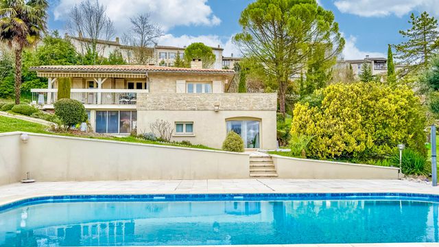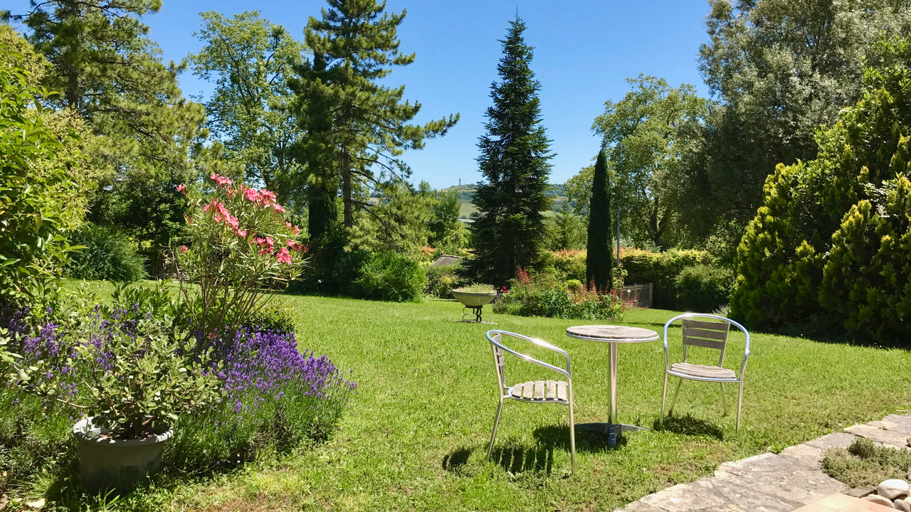 A42702SNM82 - Set in an elevated position in the heart of Montpezat-de-Quercy, this elegant, light-filled home enjoys breathtaking panoramic views stretching to the Pyrenees on clear days — all within easy walking distance of restaurants and amenities.