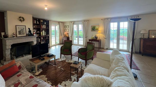 A40785JKB11 - Superb south-facing villa in a peaceful location above Aragon, with panoramic views to the Pyrenees, spacious living areas, 3 bedrooms including a master suite, swimming pool, summer kitchen and landscaped grounds.