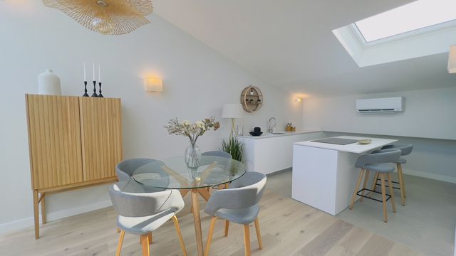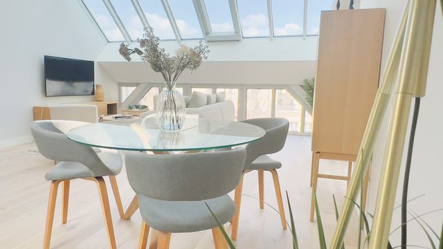 A24899DPE75 - Paris 75016 - Between Champs-Élysées and the Eiffel Tower - 87,40m2 - Exceptional top floor 2 bed fully renovated apartment in a stunning new renovation of a 1901 building originally conceived as artists' studios. This duplex loft style apartment, nestled behind a superb timber-framed facade with glazed rooves bathing the generous spaces below in light, offers a unique environment oozing Parisian chic at the heart of the Trocadéro district. The residence astutely blends the building's original artistic vocation with the über-modern, high-quality, environmentally friendly living sought by discerning 21st century buyers. The 5th floor sleeping area includes an entrance hall, 2 bedrooms, 2 bathrooms, WC and laundry. The 6th and top floor features a living room with a new contemporary, fully equipped open-plan kitchen and WC. Huge windows in the main rooms give an unobstructed view of the discreet, leafy, cul-de-sac, a rare privilege in such an exceptional location in the French capital.