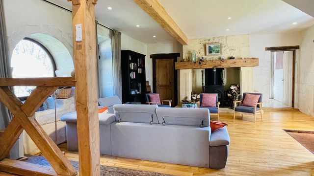 A 100m2 tenant house to be restored offers additional possibilities as a guest house, artistic studio or work space. Two spacious barns offer additional potential for storage or creative projects. The estate extends over 12 ha of forest and fields. And yet only 5 minutes from all amenities. A great opportunity for bon vivants and investors in a peaceful piece of paradise.