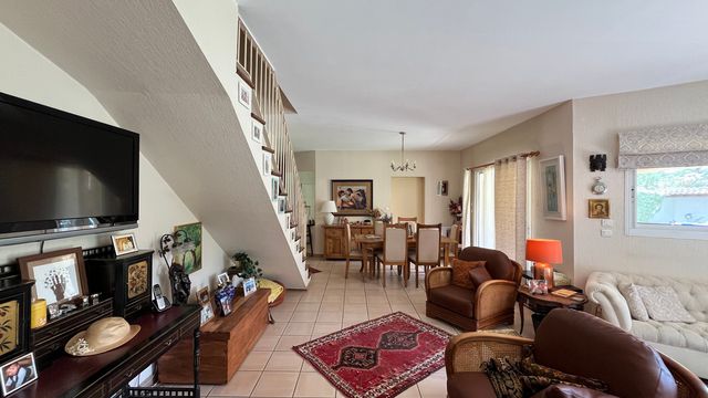 A38559CHS30 - Located in a residential area, this 153 m² villa has been built using quality materials and comprises : On the ground floor, a living room with fireplace opening onto a south-facing terrace, a fully-equipped separate kitchen, 2 bedrooms, a bathroom, an office area and a utility room adjoining the garage.