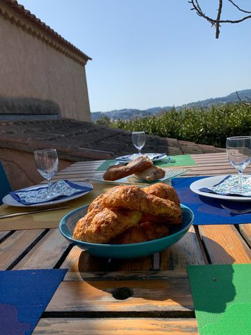 Facing south with expansive views of west Toulon as well as a partial view all the way to the sea, this home is bathed in sunshine in winter and holds part of it's silhouette within the shade for those warm summer afternoons. Tiered gardens to the south-east of the main building are shaded and are available for outdoor activities.