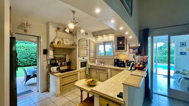 A39347NEM83 - Dans le quartier prisé des Golfs de Valescure, cette villa provençale de 170 m² séduit par son calme, sa luminosité et son terrain paysager de 802 m² avec piscine. Elle propose un vaste séjour avec cuisine ouverte, un bureau, ainsi qu'une suite parentale de plain-pied. À l'étage, trois suites confortables et une pièce polyvalente complètent l'espace nuit. Deux studios indépendants entièrement équipés offrent un fort potentiel locatif ou un accueil idéal pour les invités. Terrasse couverte avec cuisine d'été, garage, forage, climatisation réversible et fibre Internet viennent parfaire ce bien rare proche des golfs et des commodités.