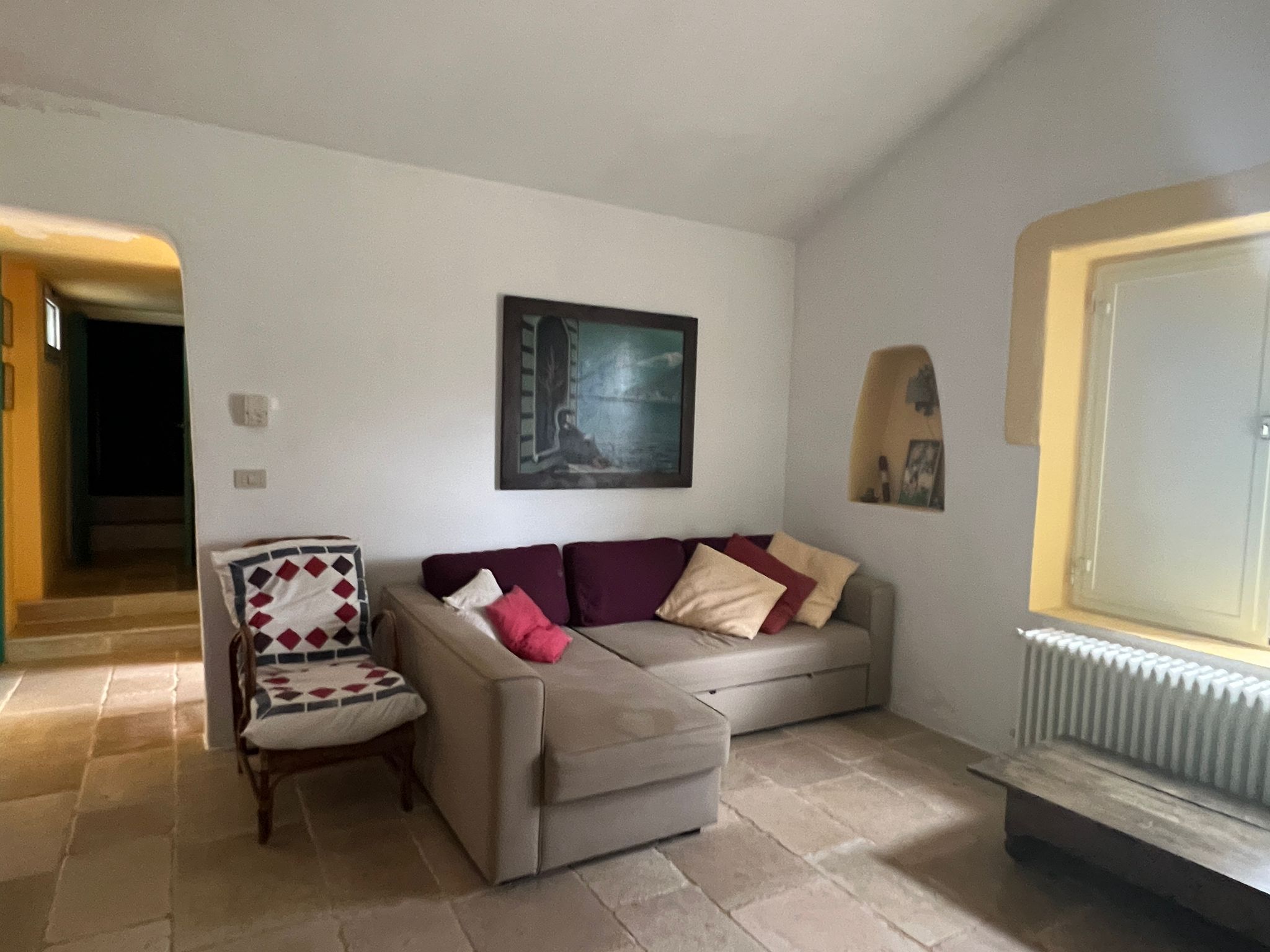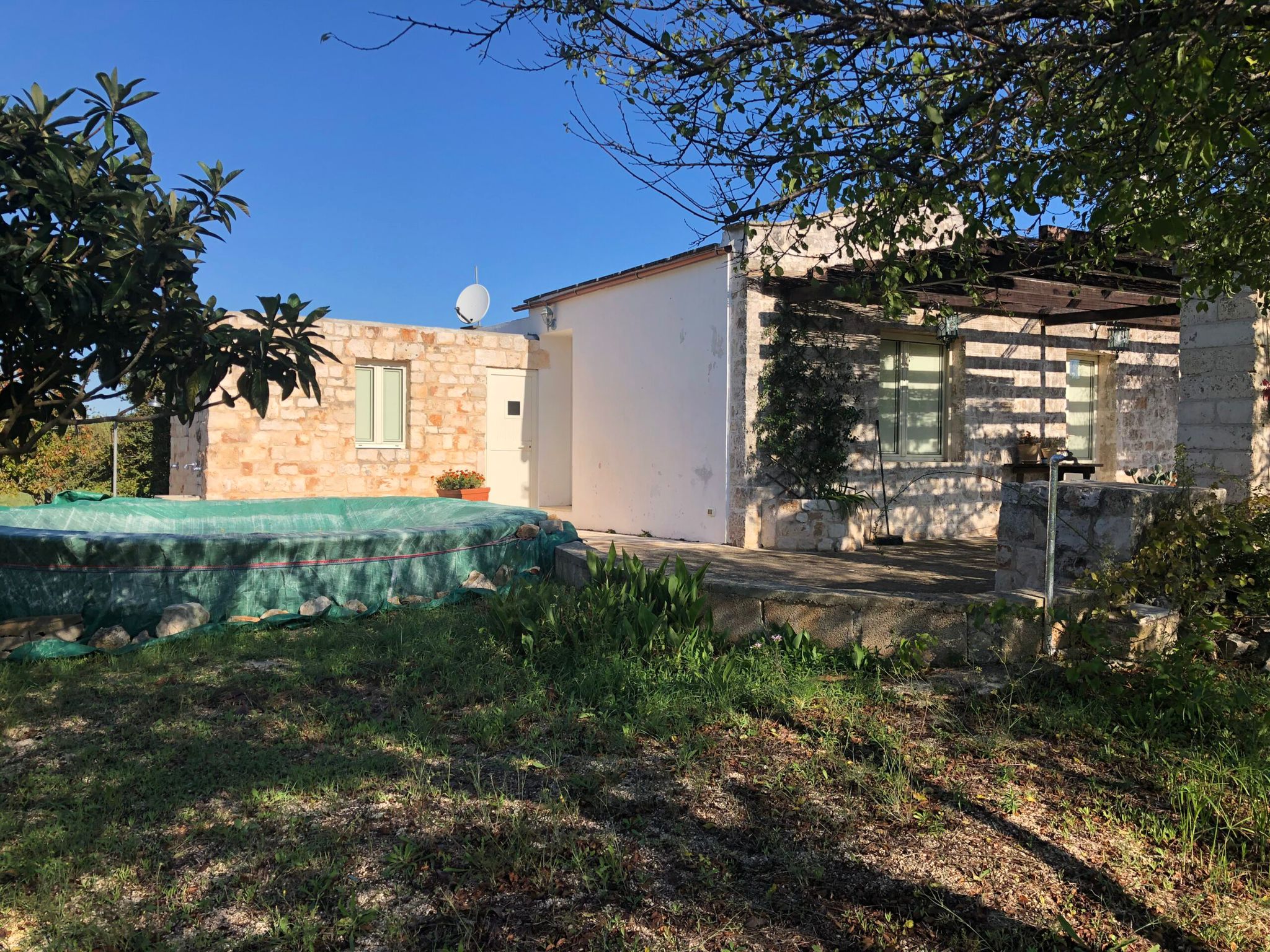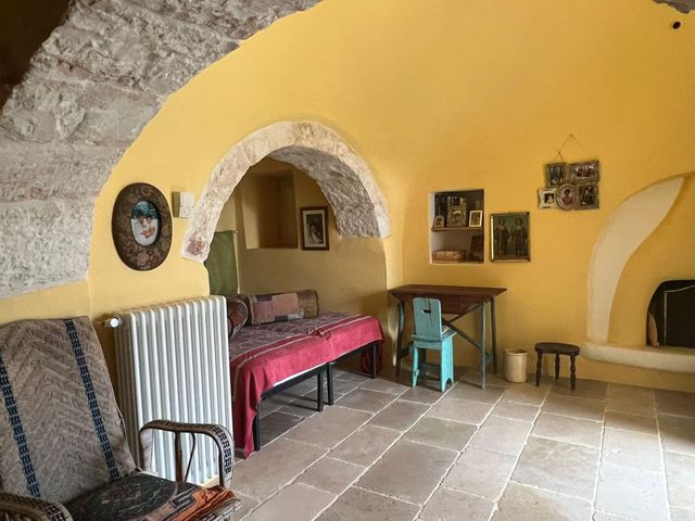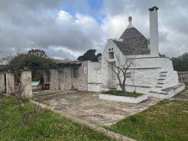 Die Struktur besteht aus drei Kegeln unterschiedlicher Größe und einem aus Stein hergestellten Verlängerungsbereich aus Stein, innen sind in eingeteilt in: einen bequemen Eingangsflur, zwei Schlafzimmer, ein großes Wohnzimmer mit Kamin in der Trulli (in diesem Wohnzimmer mit geringer Eingriffe, Sie könnten ein drittes Schlafzimmer bekommen), eine komfortable Küche, zwei Badezimmer und ein großes Wohn- / Esszimmer.