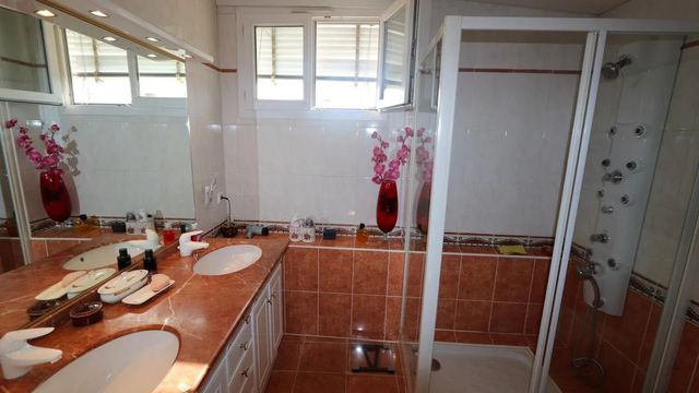 Built on a 482 sq m (5,100 sq ft) wooded plot, it opens onto a beautifully landscaped garden from the entrance, accessible via an automatic gate. Here you will discover a lovely variety of flowers and plants, a vegetable garden, a pergola, a barbecue area, a lawn, and a spacious terrace of approximately 70 sq m (753 sq ft).