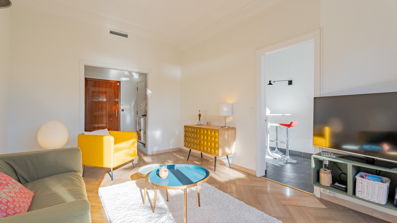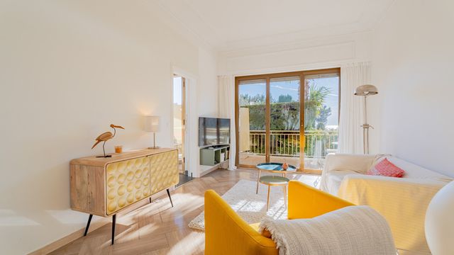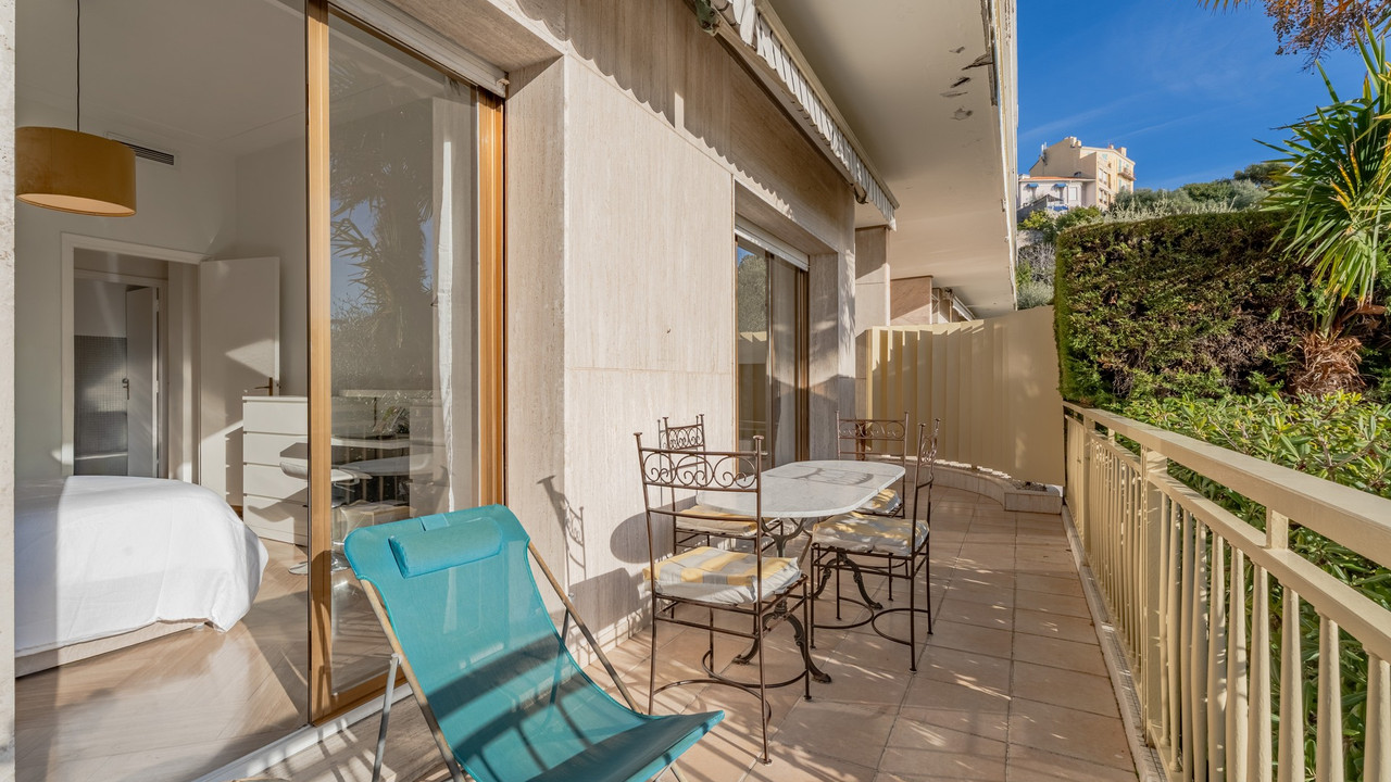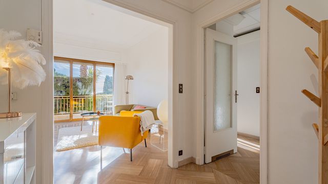A42711ATB06 - Nice Franck Pilatte - Located in a highly sought-after area, just steps from the nature reserve and Coco Beach, on the raised ground floor of a prestigious residence with a concierge, seawater swimming pool, and tennis court, this spacious 2-room apartment of over 58 m² is in perfect condition and equipped with air conditioning. A prime, quiet location, close to all amenities..