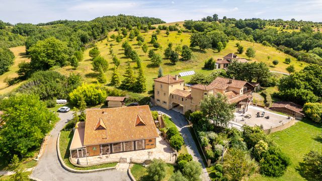 A28836CEL32 - Located in a magical hillside setting in the beautiful rolling hills of the Gers, this splendid country estate of 34 hectares with a private lake comprises a contemporary manor house, two villas and three gîtes/chalets for holiday rental.