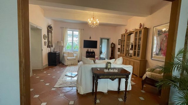 Living space of approx. 227 sqm with 4 bedrooms, study, lounge with marble fire-place, diner-room, fitted kitchen, 3 bathrooms, 3 toilets, terrace and small dependance.