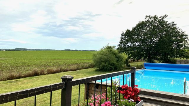 A43254GJP47 - Beautifully situated in peaceful countryside between the popular towns of Duras and Eymet, and circa 30 minutes from Bergerac Airport, this charming property offers two homes, two private swimming pools and approximately 8,650 m² of land with beautiful open views.