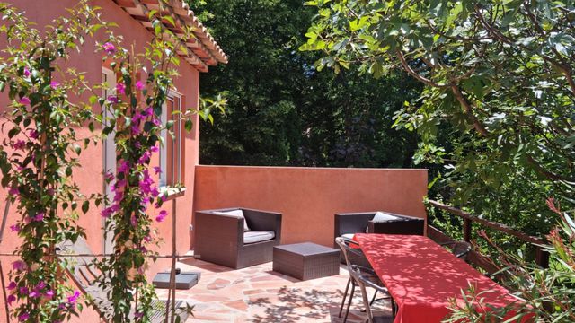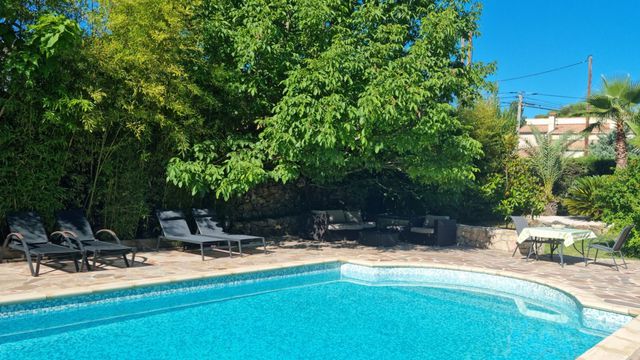 A31953FT83 - NEW-Florence Tourbier presents this attractive detached villa of 190m2 approx. built on a very attractive flat, wooded and landscaped plot of 1700m2 approx. facing south and not overlooked, situated in a quiet residential area, comprising a welcoming entrance hall, a large living room with a lounge area with wood burner and a dining room close to a modern open-plan fitted and equipped kitchen, a utility room, a boiler room, a large study (ideal for a liberal profession), 2 large and beautiful bedrooms, a bathroom with wc, a guest wc and a dressing room; on the first floor : a large bedroom with private terrace and shower room with wc, with independent access. Outside the villa are 2 independent bedrooms with their own shower rooms and wc, a terrace, a mosaic swimming pool and a 2-car carport. Great rental potential for seasonal or year-round B&B.