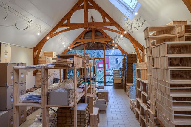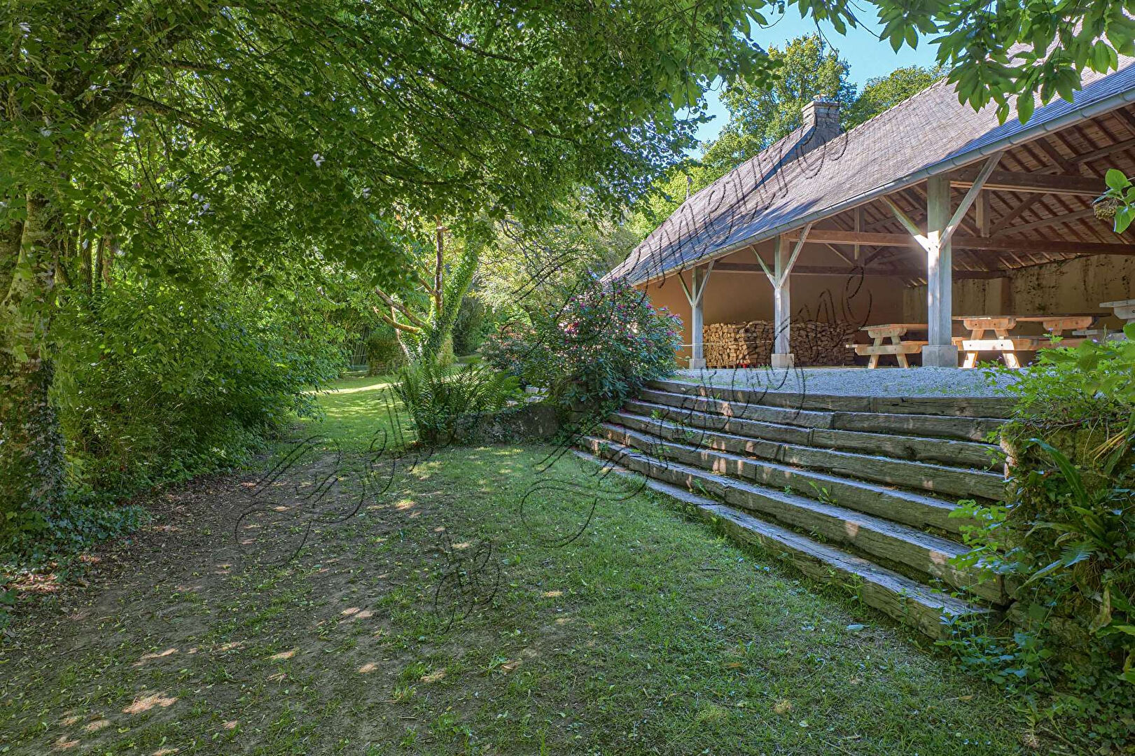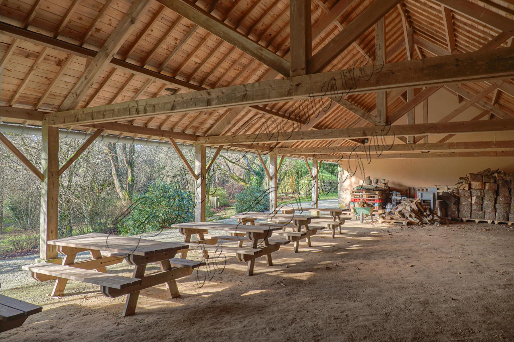 Une grange en pierre se compose d'un vaste préau de 180 m², d'une salle de réception de 90 m², en rez-de-jardin avec 2 wc et d'une autre salle de réception au niveau supérieur.