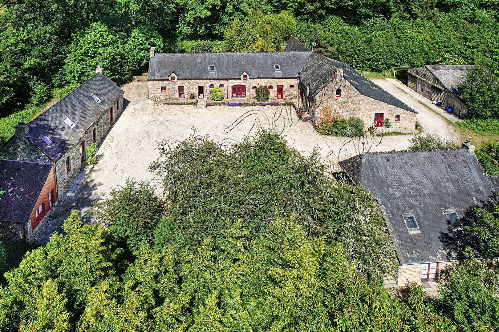 €879,500 ID: 167379Bel ensemble de bâtiments du 19ème, composés de deux logements et de bâtiments annexes pouvant s'adapter à de nombreux projets et offrant plus de 1000 m² rénovés. Le domaine est entouré de bois et prairies avec sentiers de randonnée accessibles directement de la propriété.