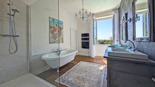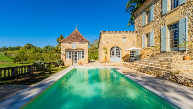 A39771SUG24 - Built at the dawn of the French revolution in 1789, this stunning manoir has been painstakingly restored to the highest standard. The property maintains faithfully its period feel with its large luminous reception rooms, large well equipped kitchen still with its original bread oven fireplaces (not operatonal), and high quality bathroom facilities supporting 5 beautiful bedrooms. Outside, the property has further original features with its arched gateway, high terrace, stone well and dovecot tower overlooking a panoramic view. A prestige property comfortably 18th century, ready to move into!
