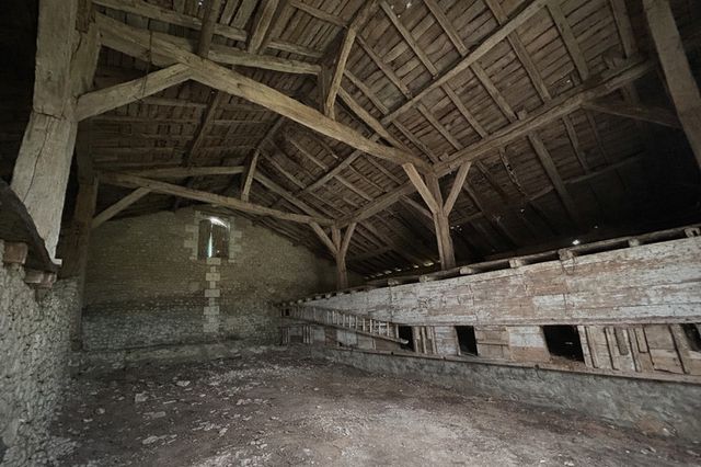 The outbuildings are arranged around the courtyard. Attached to the mill is a large barn/stable of approximately 200 m², ideal for conversion or storage. The timber framework is remarkable and, following roof revision, would be perfect for creating additional accommodation.