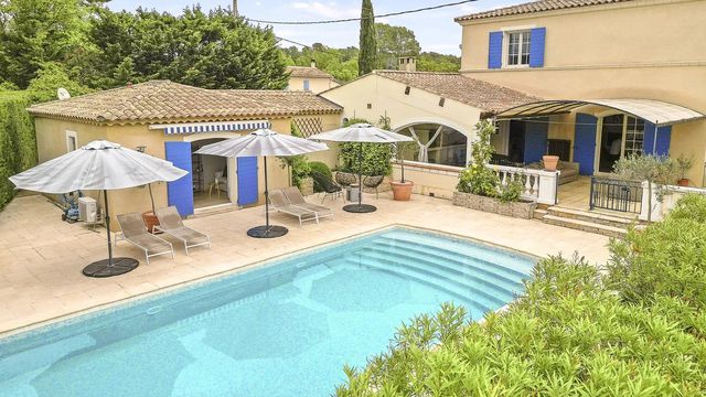 Spacious, bright and sunny property with four bedrooms and spacious living areas. The property has a beautifully landscaped, enclosed garden, a heated saltwater swimming pool, summer kitchen, several terraces and a garage (30.58 m²). Ideal as a family home, country house, main or second home or for rental investment. Situated in the heart of Provence, a region renowned for its vineyards, châteaux and art of living. Just 45 km from the Gorges du Verdon, 1 hour from the Mediterranean coast and with easy access to Marseille or Nice international airports.