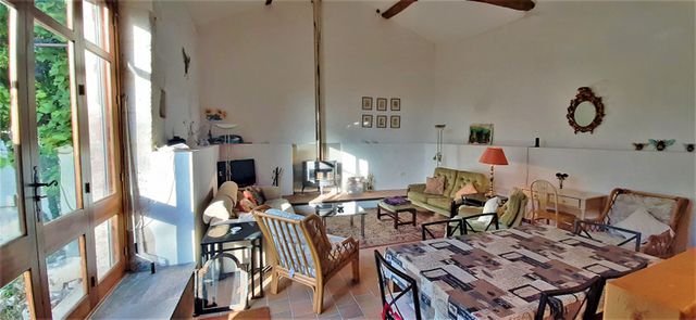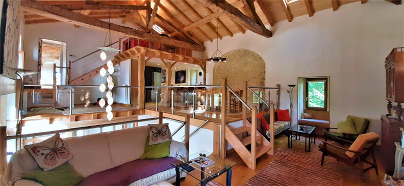 In a separate part of the property which can be used for guests there is a second kitchen which opens onto another living and dining room also with a wood burning stove, and above the kitchen area there is a mezzanine which can be used as another bedroom if required.