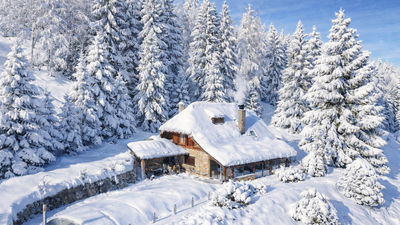 Breathtaking 2 home mountain paradise for sale, hidden in a 2-hectare private park in the massif des