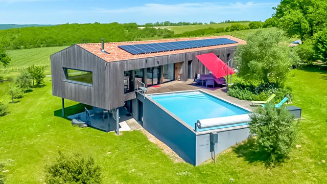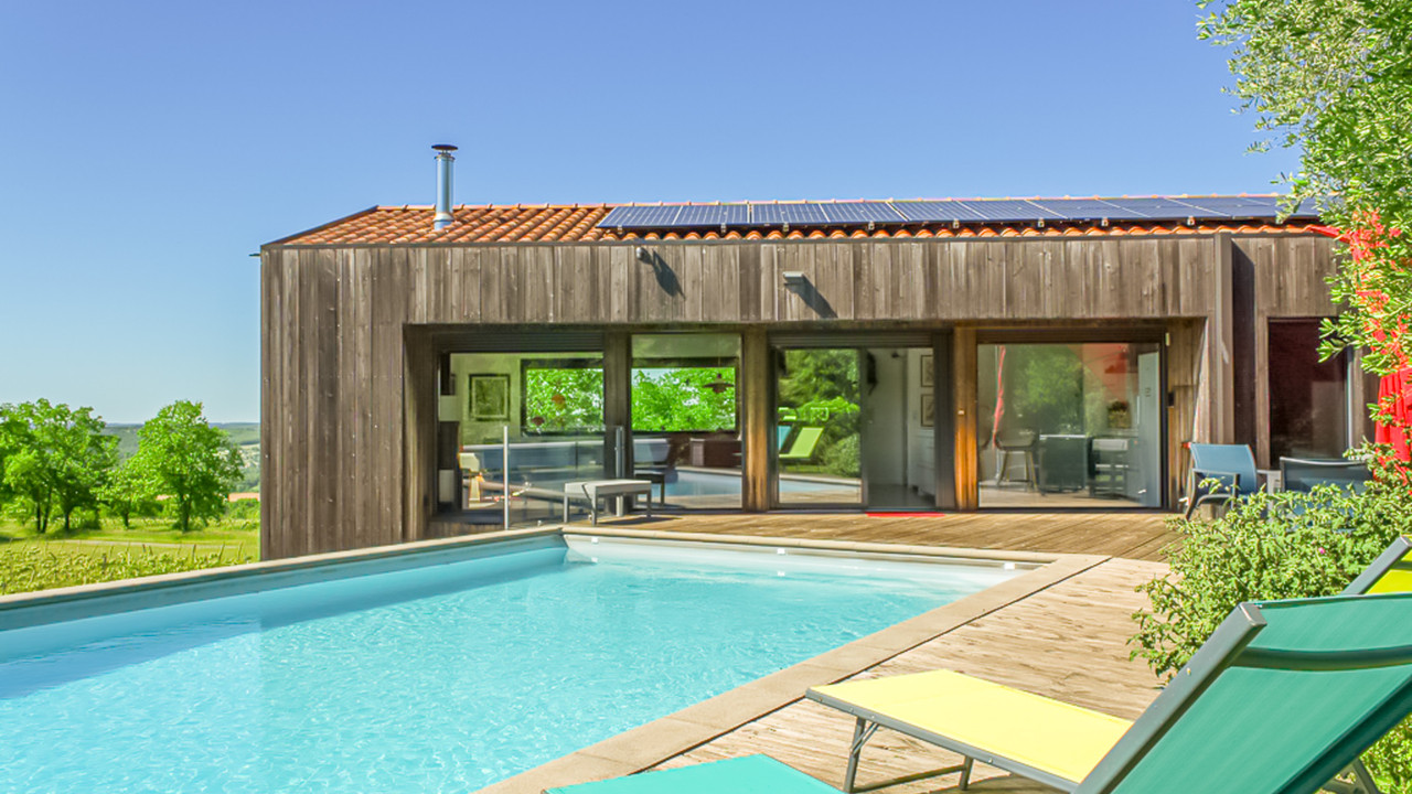 Breathtaking modern retreat with pool, panoramic views & sustainable design in an idyllic Lot Valley