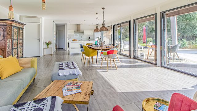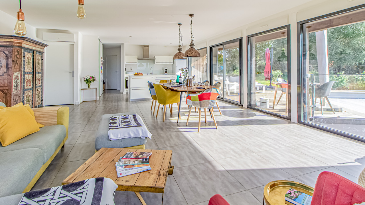 A40988SGU46 - A home that embraces sunshine, calm, and sweeping greenery at every turn. Thoughtfully designed for effortless living, this haven feels open, airy, and beautifully connected to nature. Generous volumes, peaceful corners, and crafted finishes create an atmosphere of modern ease, while large glass openings invite the outdoors in. Every space feels considered — practical yet uplifting, stylish without excess. Outside, terraces and landscaped grounds encourage long lazy afternoons, quiet coffee moments, and unforgettable summer evenings beneath vast skies. A retreat made for both relaxation and inspiration, wrapped in views that change with the light and seasons. Rural charm meets contemporary comfort — a place to breathe deeply, live well, and feel truly at home. Information about risks to which this property is exposed is available on the Géorisques website : https://www.georisques.gouv.fr