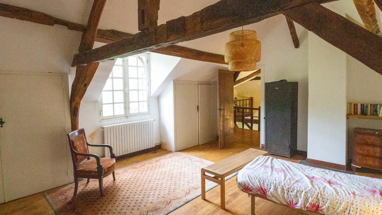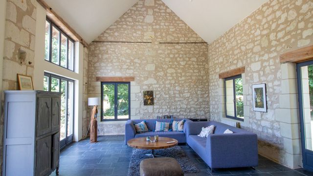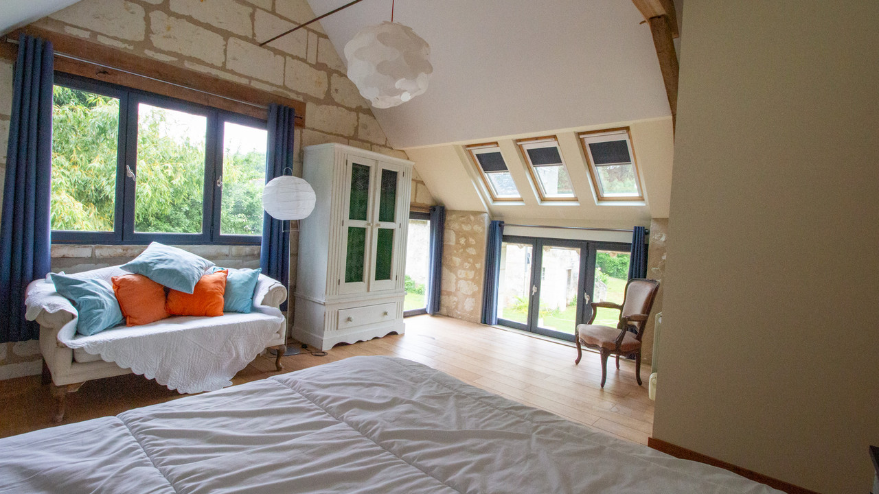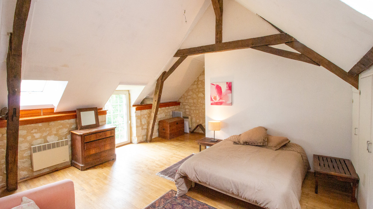 A37176AKB49 - Just 20 minutes from Saumur, nestled in a bucolic location, this 5-bedroom water mill and 3-bedroom gîte with heated swimming pool, offering a unique blend of history and character, and is perfect if you are looking for a home in peaceful and tranquil surroundings. Although there has been a water mill on the site since the 12th century, the current mill dates from the 17th century and offers around 250m2 of living space. It has a wonderful terrace at the rear of the property with views over the river, fields and to the forest beyond. The former barn was renovated approximately 15 years ago using quality materials like oak and stone flooring, to create a stunning, bright gîte offering 180m2 of living space. It has been cleverly designed with two staircases to allow separate bedroom access, useful for clients renting the property with family or friends.