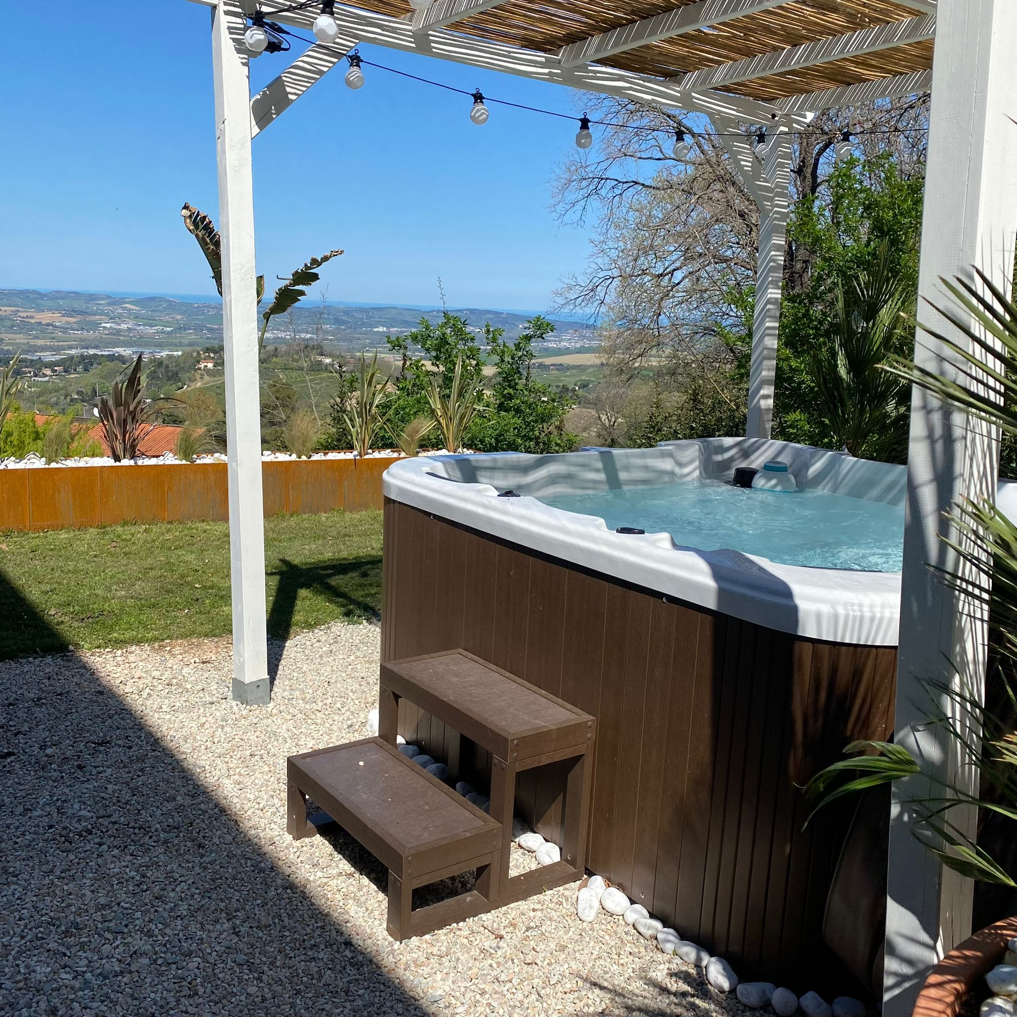 Just past the village, you drive slightly uphill where a large electric gate leads you to the property. Once you drive up the driveway, you are immediately greeted by breathtaking views stretching from San Marino to Pesaro — rolling hills with the sea in the background.