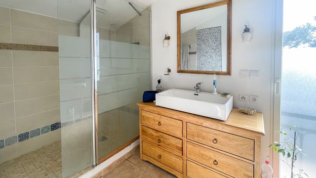 The 2741 m² grounds, with their panoramic views and landscaped with Mediterranean trees and olive groves, are laid out in wide terraces, offering plenty of privacy and greenery. You'll also enjoy a beautiful 5 x 8 metre mosaic swimming pool with a large sunbathing area with a shaded area, ideal for relaxing in total tranquillity. If you're looking for authenticity and character, you'll love this farmhouse.
