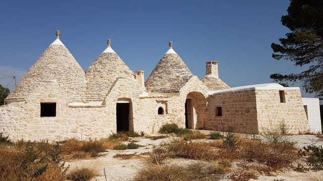 €135,000 ID: 141003In vendita nelle campagne di Martina Franca, un complesso di trulli e lamie restaurato esternamente in modo naturale e originale, è necessario finire internamente a proprio piacimento. Il complesso si trova a poca distanza dal centro abitato, situato su un terreno bellissimo composto da piazzale antistante, quattro coni con alcova, lamia con volte a botte e due camere di nuova costruzione con solaio. Il terreno di circa 12000 mq è coltivato con ulivi, frutteti, piante ornamentali e pini marittimi. Possibilità di costruire una piscina di 40 mq e collegarsi all'acquedotto e alla luce. La proprietà è ideale sia per la residenza privata che per la casa di vacanza perché si trova in una zona tranquilla e privata.