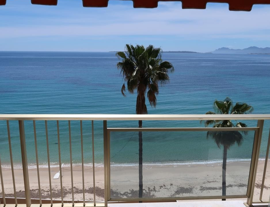 A40491PAK06 - Elegant and fully renovated 2-bedroom apartment of 75 m², located on the 6th floor with elevator. It offers a stunning panoramic sea view and direct access to the beach, within a sought-after residence in Antibes Juan-les-Pins and within walking distance of shops, restaurants, and public transport.