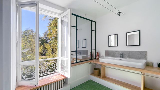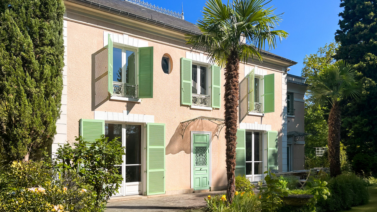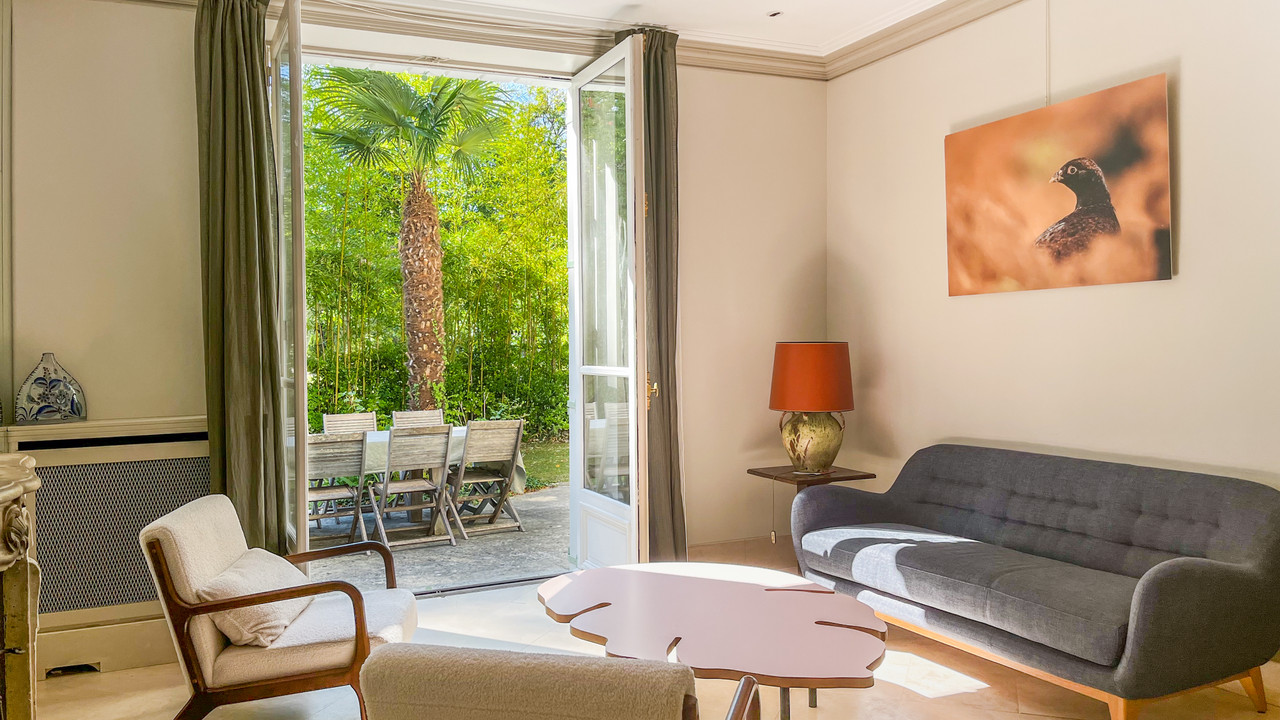 The south-facing rear façade provides plenty of light and opens onto the tree-lined garden.