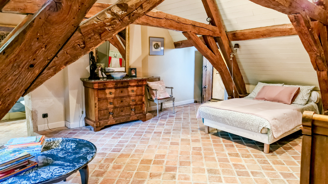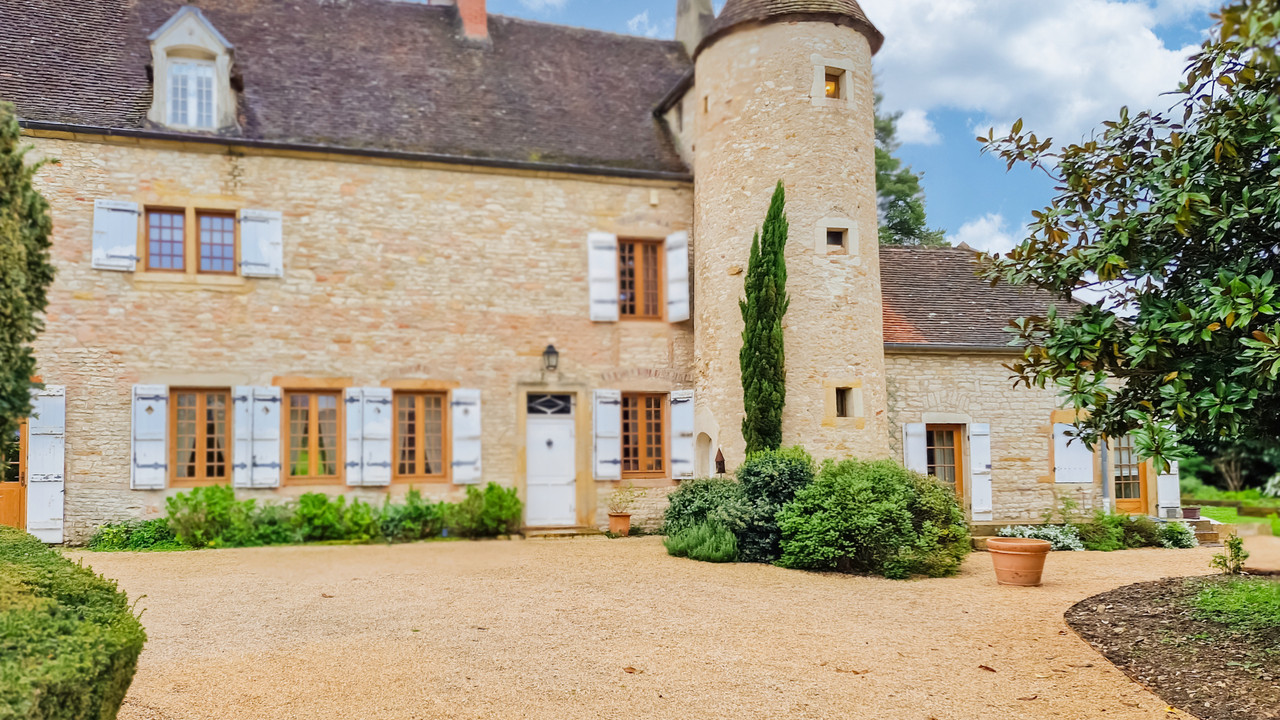 A35838CAF71 - This enchanting manor house with turret offers all the charm of the antique with the comfort of a modern family home. 5 bedrooms, one on the ground floor with a dressing room, en-suite bathroom and WC, a further 4 bedrooms and 3 bathrooms with WCs upstairs. The sitting room overlooks the landscaped gardens and surrounding countryside, it has a beautiful stone fireplace and a library. A practical separate fitted kitchen, a dining room and a laundry room. The garden has been beautifully landscaped and offers different areas for enjoying the countryside and a large terrace with ample space for outdoor entertainment. The drive offers plenty of parking space and there is a separate garage, workshop and cellar.