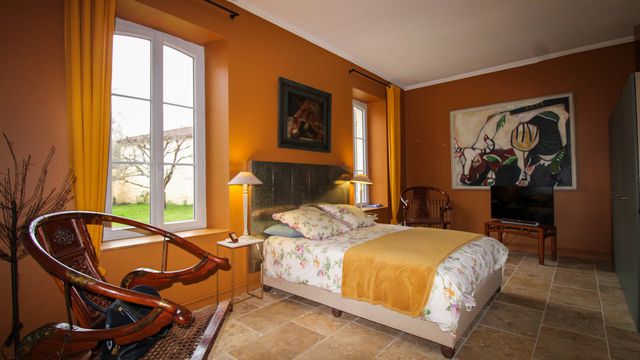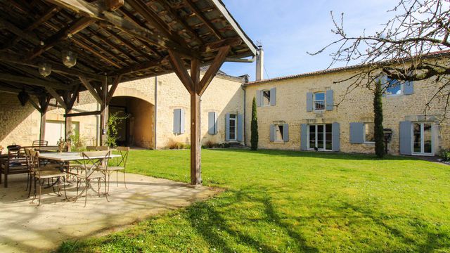 Built in the 18th century this property originally formed the masters house and chai to store the casks of eau de vie and cognac. Totally private, behind the imposing carved stone entrance, the walled garden and covered terrace are an oasis of calm and privacy.