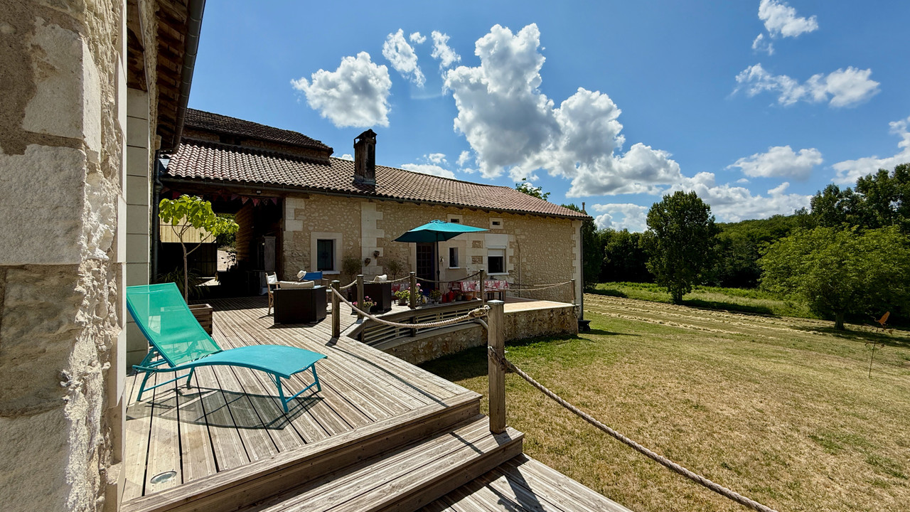 A38775SHH24 - Located in the heart of the Dordogne countryside, close to Ribérac, Brantôme, and Périgueux, this beautifully renovated property offers a unique blend of charm, comfort, and versatility. Carefully restored using quality materials, it provides flexible accommodation suitable for a family residence, guest house, or thriving business venture.