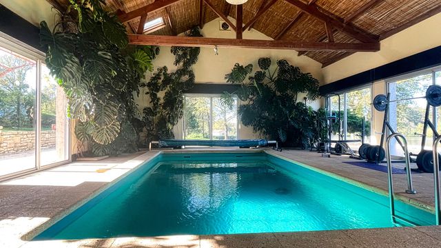 A32519JBR86 - A rare opportunity to acquire this magnificent ensemble which includes a spacious 4 bedroom, 4 bathroom villa with mezzanine, indoor swimming pool, sauna and breathtaking lake views. A renovated former water mill, converted into two, 2 bedroom gites, a fully licensed restaurant/bar, a garage/workshop, a hangar and field suitable for horses, and the 37 hectare lake.