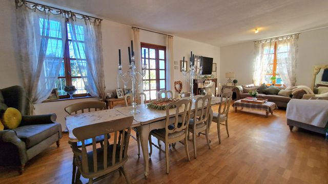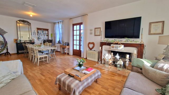 A42758CST34 - Come and discover this fabulous home, rich in character and offering over 230 m² of habitable space. Behind its elegant double doors, a stunning entrance hall sets the tone for what lies beyond. The heart of the home is a luminous 40 m² lounge and dining room adorned with a beautiful marble fireplace — perfect for both relaxed living and refined entertaining. A second reception room with its own fireplace, a charming fitted kitchen, and a WC complete the ground floor.