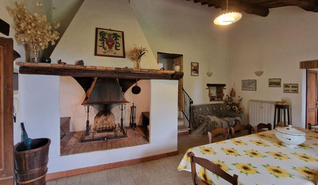 The property, immersed in the beautiful Tuscan countryside and surrounded by 8 ha of land, is located just outside the historic centre of Sarteano, which can also be reached on foot in 10 minutes.