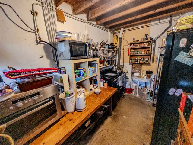 Ground Floor:- Living room with wood burning stove, kitchen, lean to with WC and shower.