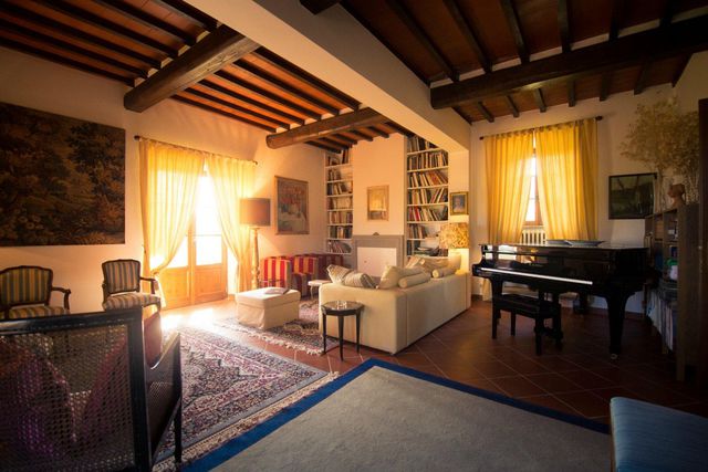 The first floor of the property consists of a large living room (about 50 square meters) which leads to three large bedrooms, two doubles and one twin. The two double bedrooms have an en-suite bathroom. From the living room there is access to another bathroom. All the bathrooms in the house are equipped with sink, bidet, toilet and shower / tub. All bathrooms also have a window.