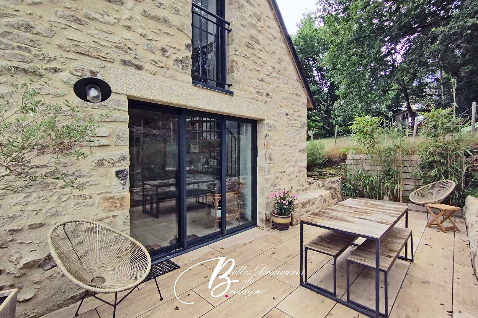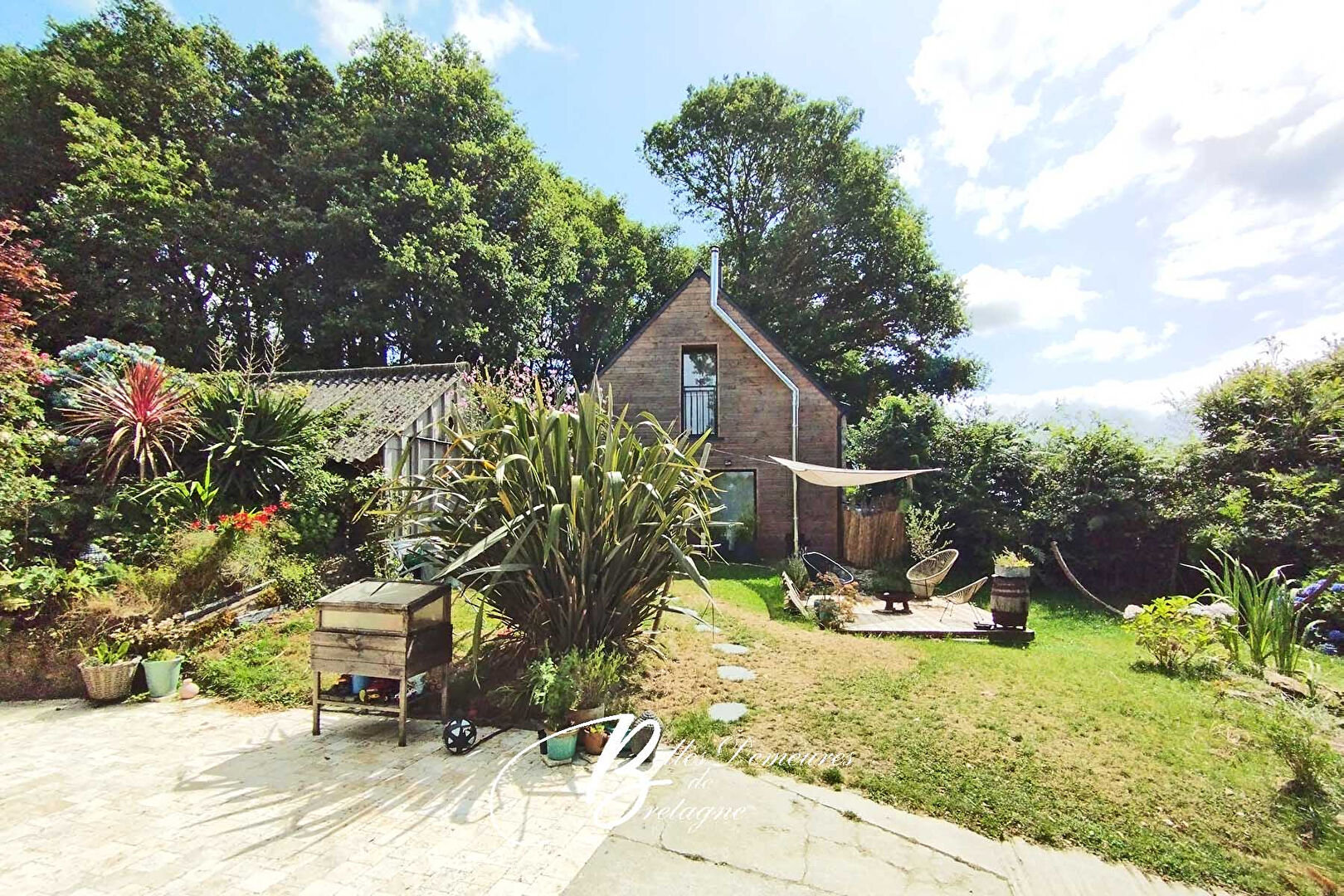 The grounds, measuring over 2,800 m², include a wooded area and a vegetable garden.