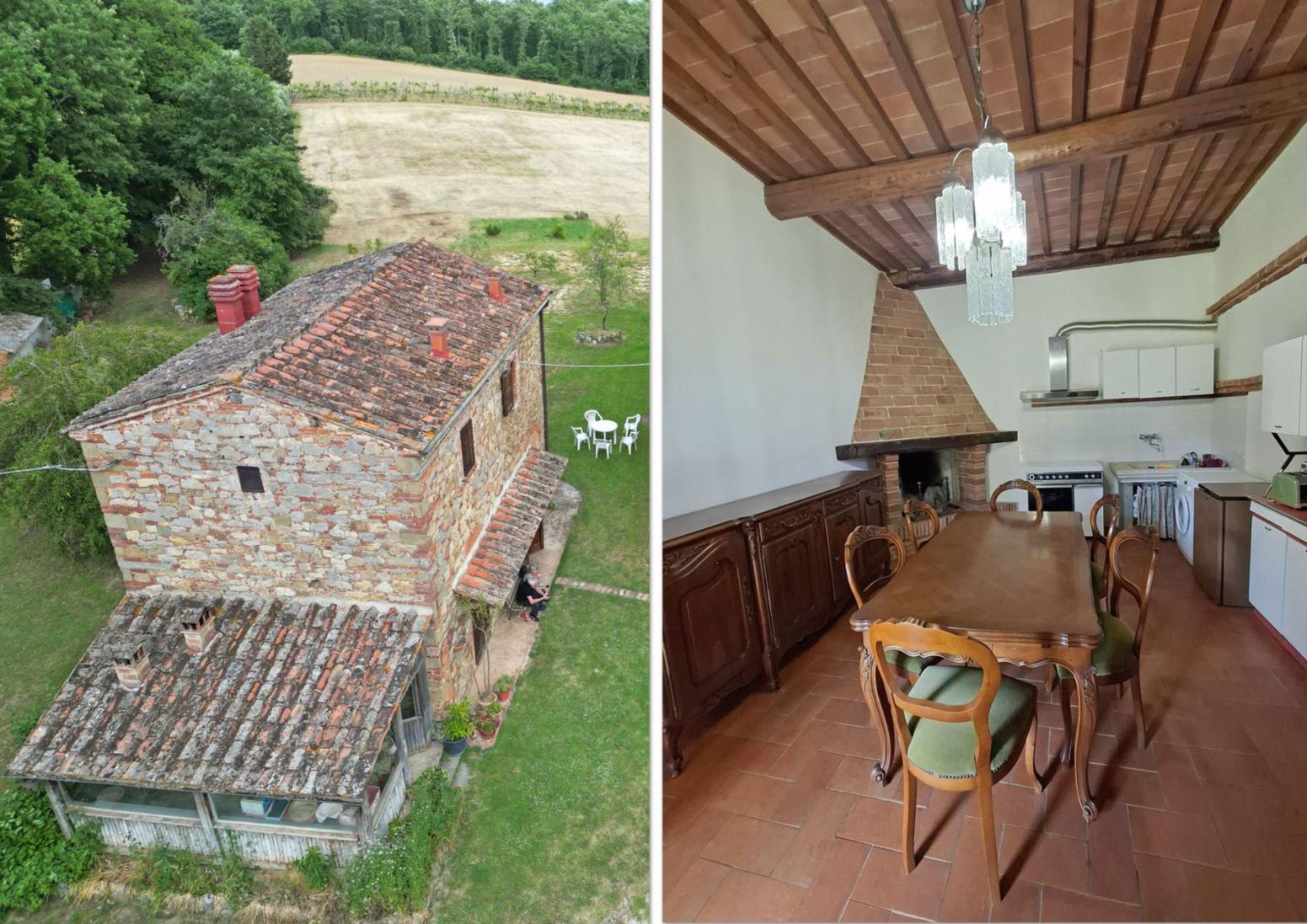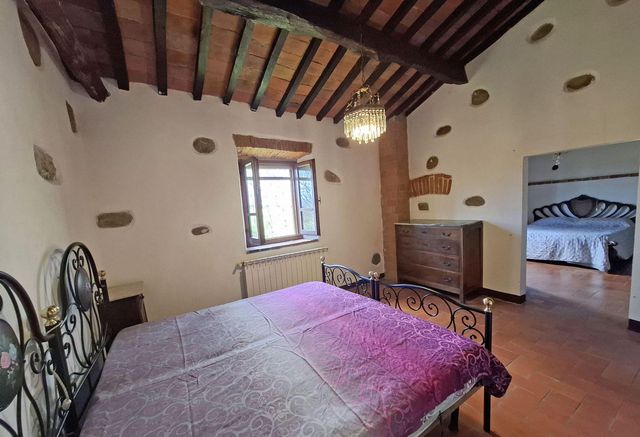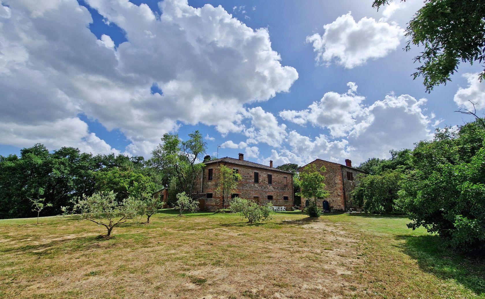 A few kilometers from the pretty village of Lucignano, in the province of Arezzo, in an excellent position among the Tuscan hills, very quiet and peaceful, we find this property consisting of two stone farmhouses with annexes, garden and surrounding land of 4 hectares.
