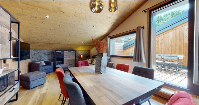 This is Apartment 9 "Le Prariond", a top floor, 3 bedroom apartment with a total surface area of 89m2 including the space under the eves and a terrace of 22m2, in this completely remodelled development of the old Hotel Bellecote at the heart of the village. There are a total of 10 apartments in this small scale development all with top quality interior design and fittings. This particular property sleeps up to 9, is available now and ready for the next ski season. This is a leaseback property which allows you to reclaim the French VAT on purchase.Contracts allow for personal use of up to 6 weeks. Guaranteed rental income + earn 68% of additional weeks' rental .