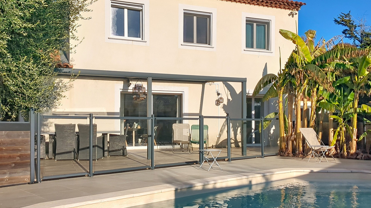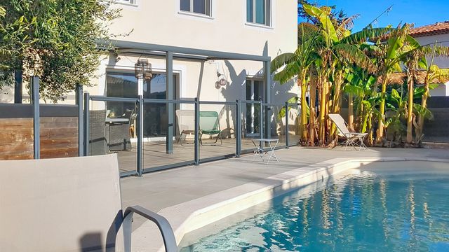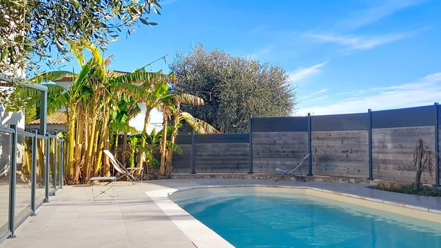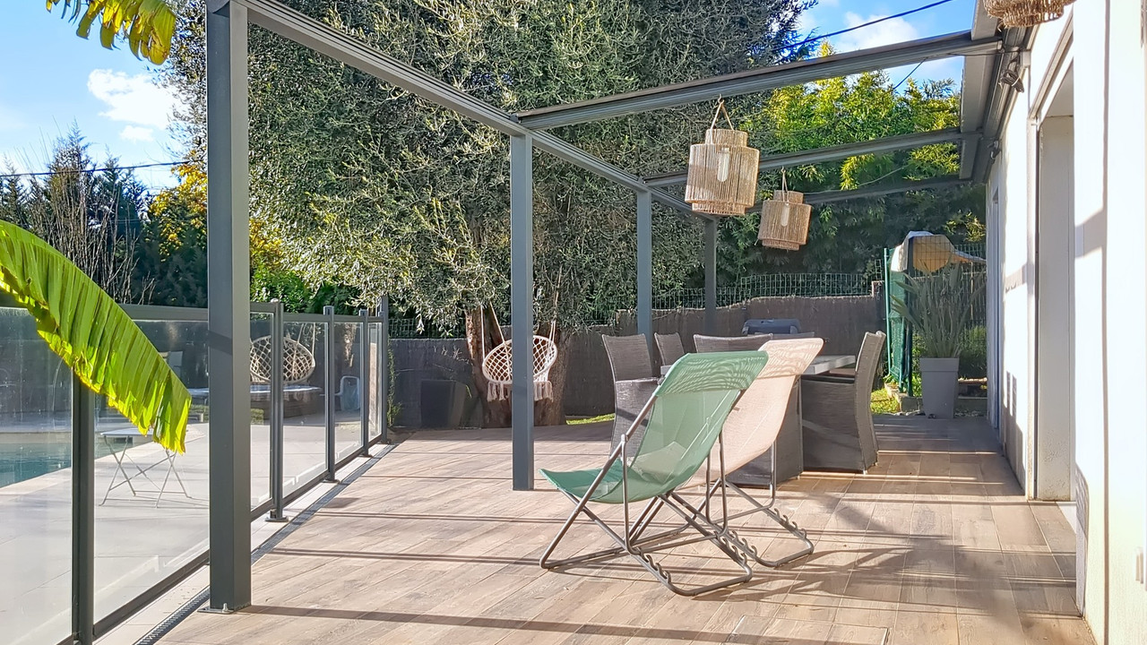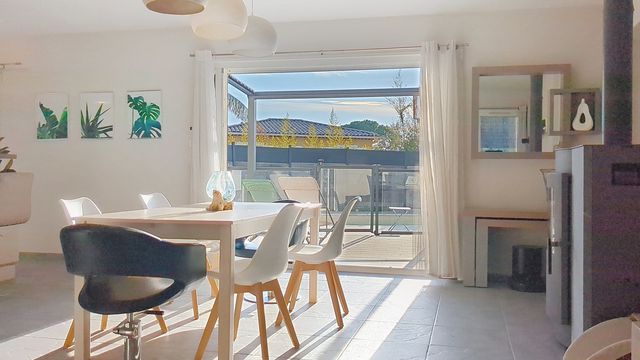 It opens directly onto a pleasant terrace and the swimming pool, creating an indoor-outdoor living space perfect for family meals, relaxing moments, and convivial evenings with friends. A converted garage completes this property, offering additional space that can be adapted to your needs (storage, gym, workshop, etc.). Warm, elegant, and bathed in light, this house is a true invitation to family life in a peaceful and sought-after location.