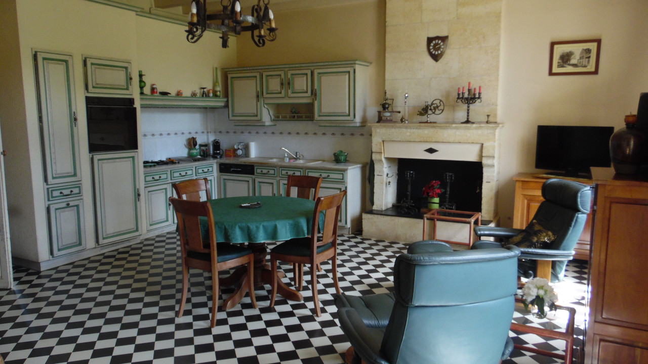 A29595MGD33 - Charming stone house with large rooms & original features, with large outbuildings to develop, garden and lovely view of the Dordogne. Habitable, a "do-er upper" with huge scope to make a fabulous home. Lounge, dining room, kitchen, 4 bedrooms, many outbuildings with great potential. Large private garden overlooking the water. Close to Bourg, walking distance of shops, restaurants, supermarket. Around 35km north of Bordeaux