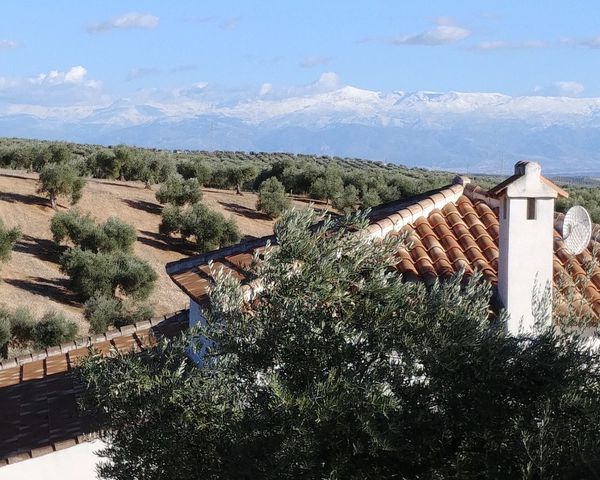 The property is located in a meandering landscape with a wonderful view over the olive groves and the Sierra Nevada mountains - in winter covered with snow. The cozy village of Alomartes with various shops, school and health center is only 3 km away (5 minutes by car) and 10 minutes to Autovia A 92.